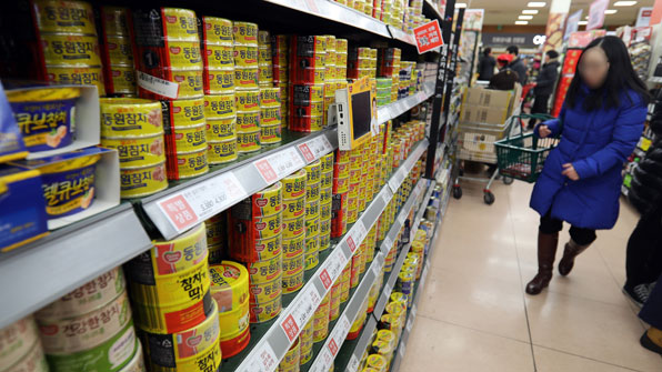 Domestically produced Dongwon tinned fish in a Korean supermarket.